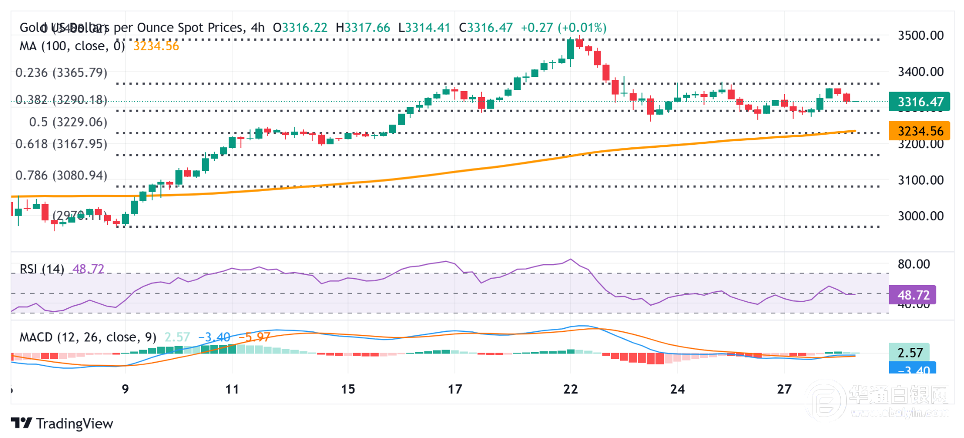 【华通白银网4月30日讯】•金价在3300美元/盎司附近徘徊,走势波动,面临阻力。 •贸易紧张局势的缓和,尤其是美国与其伙伴国之间的贸易紧张局势,正在削弱黄金的避险吸引力。 •黄金的关键支撑位位于3,260-3,265美元/盎司,阻力位在3,348-3,353美元和3,366-3,368美元。 金价目前徘徊在3300美元/盎司左右的区间,市场在等待下一步走势的动力。 在周一上涨至3360美元/盎司以上之后,周二金价再次回落至3300美元/盎司附近。 截至撰写本文时,COMEX最活跃的合约下跌0.7%,至3,323.87美元/盎司。 FXstreet的编辑Haresh Menghani在一份报告中称:“金价努力利用前一交易日从3,265-3,260美元附近反弹的机会,并在周二亚洲时段吸引新的卖家。” 贸易紧张局势 美国财政部长贝森特周一表示,美国的几个主要贸易伙伴已经提出了“非常好的”建议,旨在规避美国征收的关税。 贝森特特别强调了这些讨论取得的积极进展,暗示印度可能是首批成功敲定协议的国家之一。 瑞银分析师Giovanni Staunovo在Kitco的一份报告中称,“市场认为贸易紧张局势正在缓和,对美联储独立性的担忧有所减少,目前降低了对避险资产的需求。” “由于美联储仍有望在今年晚些时候降息,我们仍预计金价将重新测试3500美元/盎司的关口。” 汽车关税 贝森特还透露,特朗普政府正计划减轻其汽车关税的潜在不利影响。 拟议的战略包括减少目前对在美国境内制造汽车所用的外国制造零部件征收的部分关税。 此举可能会让美国汽车制造商和国际供应商松一口气,可能会防止美汽车行业供应链和价格结构出现重大中断。 黄金的支撑和阻力 然而,经济学家认为,特朗普的政策对全球商业情绪产生了负面影响。 贸易紧张局势和更高的关税也可能导致通胀上升和经济衰退。在这种情况下,黄金将进一步受益。 Geojit Investments表示,黄金市场的看涨行情可能会继续。