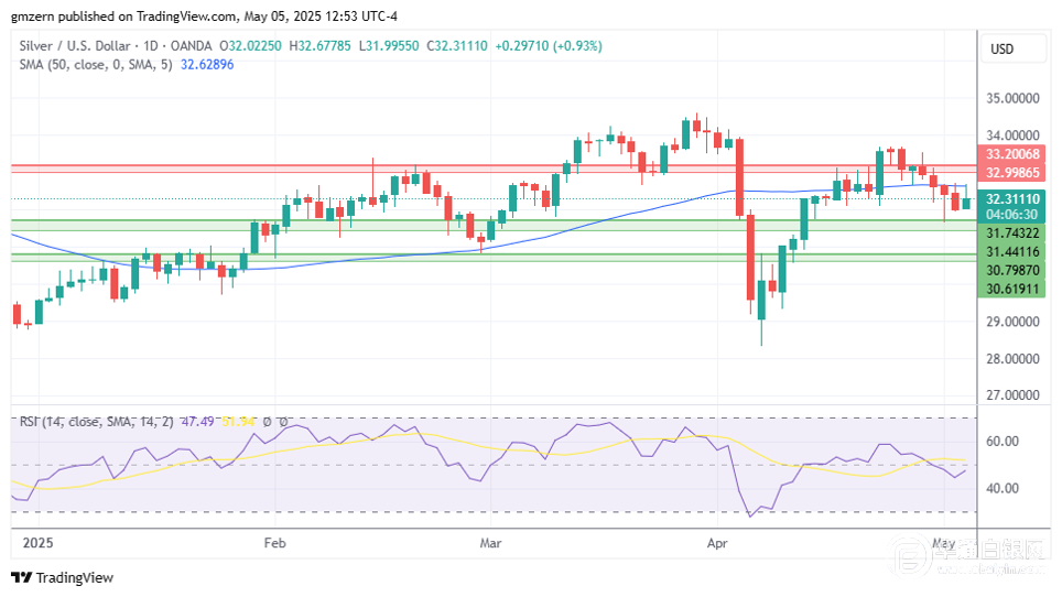 •银价未能收于32.50美元上方,因金银比创下新高。