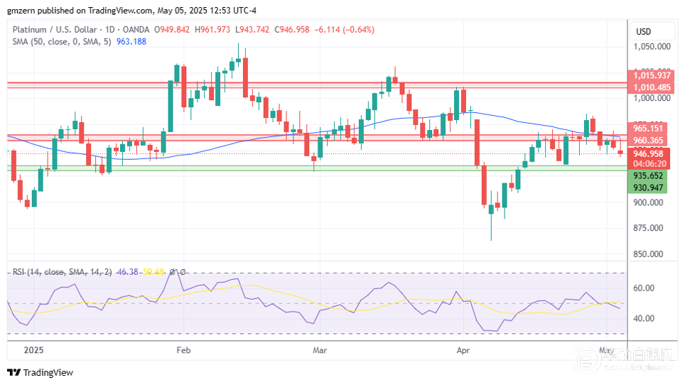 如果铂金跌破950美元的水平,则将向最近的支撑位930-935美元移动。