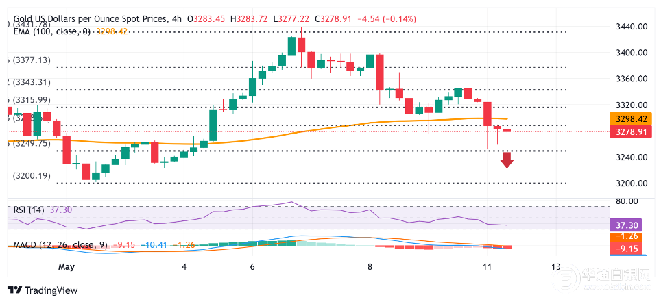 【华通白银网5月13日讯】•围绕中美贸易谈判和地缘政治紧张局势缓和的乐观情绪抑制了对黄金的避险需求。 •美元走强使得黄金对海外买家来说更加昂贵,进一步导致金价下跌。 •技术分析显示,如果黄金跌破关键支撑位,则可能跌至3200美元下方。 继周一金价跌至一周半低点后,金价似乎很容易进一步下跌。 FXStreet编辑Haresh Menghani在一份报告中表示:“围绕中美贸易协议的最新乐观情绪,仍支撑着乐观的市场情绪,并继续严重拖累避险黄金。” 美国经济衰退担忧的缓解和美联储鹰派政策的暂停也推动美元升至4月10日以来的最高点。 美元走强使得以美元计价的大宗商品对海外投资者来说更加昂贵,从而限制了需求。 截至撰写本文时,纽约商品交易所(COMEX)最活跃的黄金合约价格为3,230.26美元/盎司,较前一收盘价下跌3.4%。 在其他贵金属中,纽约商品交易所最活跃的白银合约也下跌1.7%,至32.358美元/盎司。 中美贸易谈判 周日,中美之间的高风险贸易谈判在瑞士圆满结束。中美双方已同意暂停实施24%的关税90天。 作为协议的一部分,对等关税预计将降低115%。 Haresh Menghani称,这一发展刺激了全球风险交易环境,并对黄金等避险资产的价格产生了负面影响。 中美对等关税引发了一场贸易战,引发了人们对潜在全球衰退的担忧。 地缘政治紧张局势缓和 俄罗斯总统普京同意与乌克兰总统泽伦斯基举行直接会谈,并提议在没有任何先决条件或拖延的情况下,于5月15日星期四开始进行会谈。 荷兰国际集团分析师表示:“巴基斯坦和印度之间的停火也提振了风险情绪,打压了金价。” “尽管如此,今年到目前为止,金价上涨了20%以上,特朗普不可预测的贸易政策是2025年迄今为止金价的主要推动力。” 本周,交易者将关注即将到来的美国通胀数据以及美联储主席鲍威尔周四的讲话,以寻找有关未来降息方向和潜在市场催化剂的信号。 金价可能跌至3200美元以下 FXStreet表示,确认跌破3,295-3,290美元支撑位(4小时图上的100周期均线和近期从月低点上升趋势的61.8%斐波那契回调位)可能预示着黄金的看跌走势。 “此外,小时图上的振荡指标一直在获得负面牵引力,并支撑金价盘中进一步下跌的前景。”Haresh Menghani表示。 他补充称,如果金价跌破约3,253-3,252美元的亚洲日低点,将强化看跌前景,并可能跌至近3,200美元的月低点。
