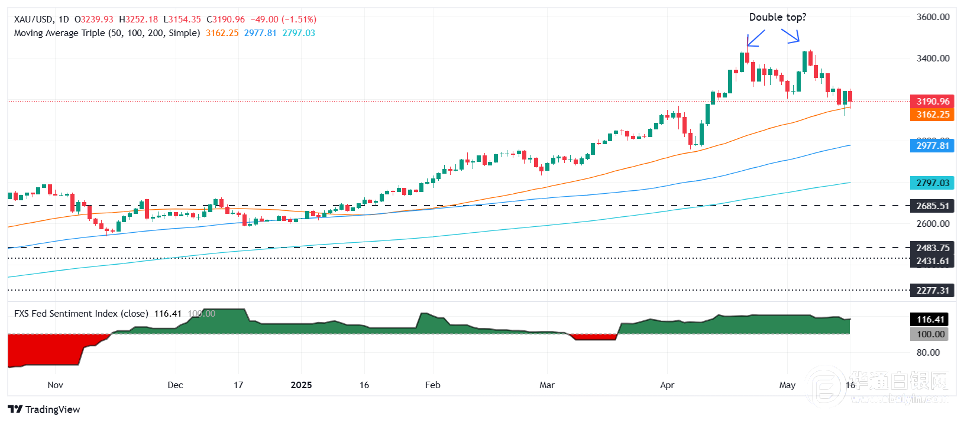 【华通白银网5月19讯】•白银的上限为32.73美元(50日移动均线),受到31.88美元附近100日移动均线的支撑,交易波动较大。 •相对强弱指标持平,接近中性;需要突破33.00美元才能将看涨偏向转向33.50-34.51美元 •跌破32.00美元可能会暴露31.65美元和200日移动均线31.23美元,看跌压力增加。 上周五,白银价格小幅走低,跌幅逾1%,美国国债收益率上升,美国国债收益率在北美交易时段晚些时候出现反弹。白银交易于32.26美元,日内达到32.68美元峰值。 白银价格预测:技术前景 过去5天,白银分别在50日和100日简单移动均线(32.73美元和31.88美元)之内盘整,日线图显示没有明显的偏差。相对强弱指标(RSI)看跌,但仍在50中性线附近持平。 这证实了白银缺乏方向,但如果多头清除了从3月28日至4月25日峰值形成的下行趋势线(该趋势线可能在33.00美元附近被突破),则可能会重新获得控制权。突破33.00美元将暴露33.50美元,随后是34.00美元。下一个止损点将是10月30日峰值34.51美元。 反之,如果白银跌破32.00美元,首个支撑位将是100日移动均线,随后是5月15日低点31.65美元。一旦该水平被清除,下一个止损点将是200日移动均线31.23美元,随后是31.00美元。 白银日线图