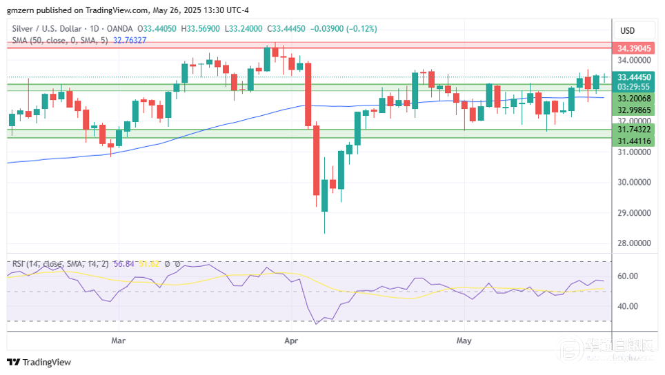 【华通白银网5月27讯】•金价未能收于3350美元上方。 •由于金银比回落,白银仍停留在33.50美元附近。 •铂金因获利回吐而持平。 黄金