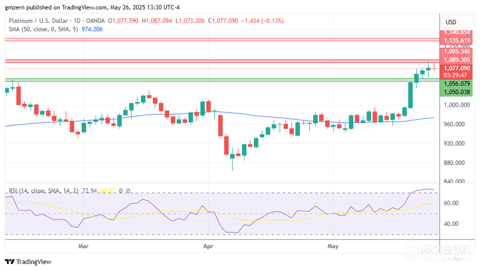 铂金基本持平,因交易商在强劲反弹后回吐部分获利。 如果铂金成功测试1090-1095美元阻力位,则将向下一个阻力位1135-1140美元前进。 白银网 |