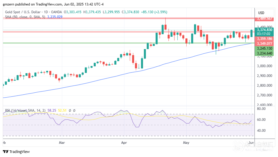 【华通白银网6月3讯】•金价攀升至3350美元上方。 •白银测试关键阻力位34.40-34.60美元。 •铂金试图回到1055美元上方。 黄金