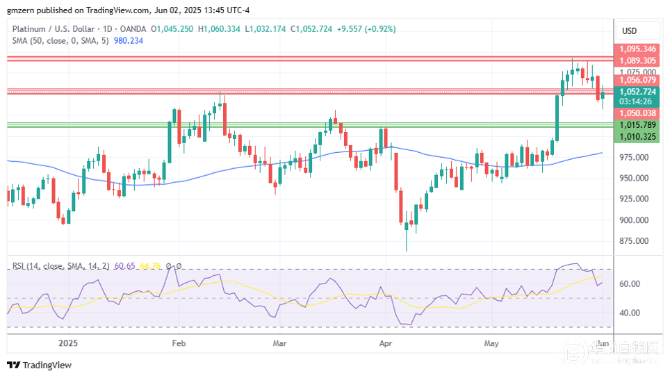 在大宗商品市场普遍反弹之际,铂金从日低反弹。 如果铂金回到1055美元上方,则将向下一个阻力位1090-1095美元前进。 白银网 |