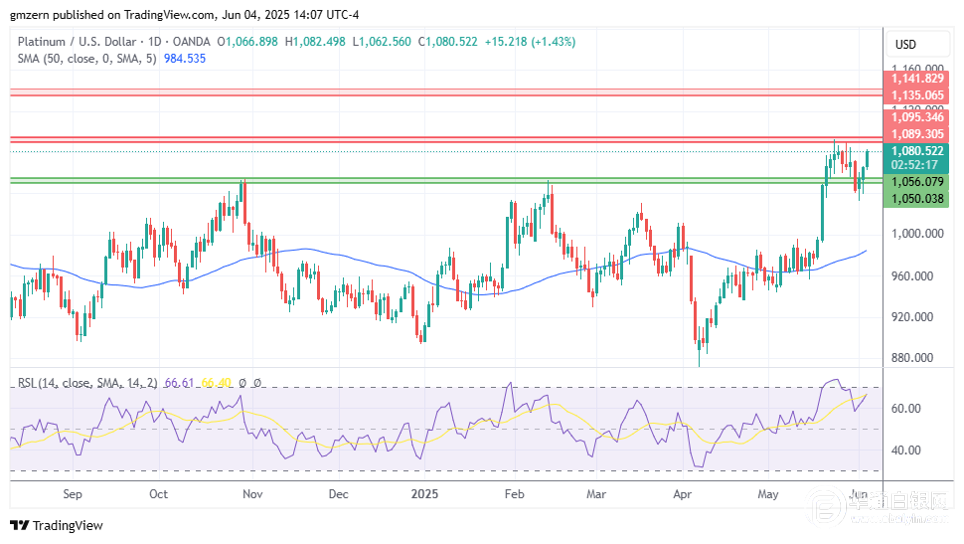 【华通白银网6月5讯】•黄金正向3400美元水平前进。 •白银正试图在阻力位34.40-34.60美元上方结算。 •铂金攀升至1080美元上方。 黄金